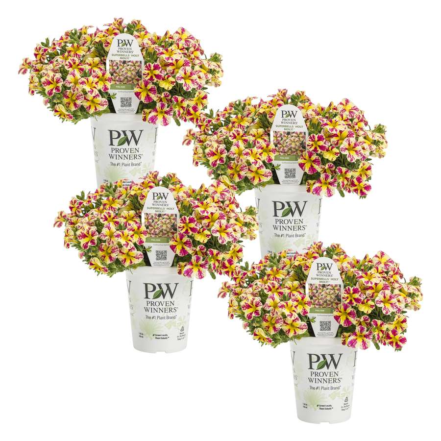 SPRING FLOWER: This beautiful Superbells Holy Moly! calibrachoa is sure to make you sau "Holy Moly!" Its flowers are a creamy shade of yellow with bright pink spotting and a deeper yellow center. They thrive in containers or raised beds!