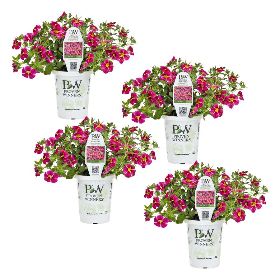 SPRING FLOWER: This beautiful Superbells Cherry Star calibrachoa is a vibrant shade of red with thin yellow lining making a star shape in the petals. They thrive in containers or raised beds!