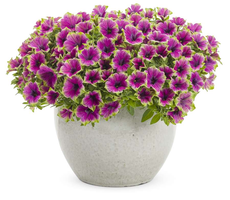 SPRING FLOWER: This unique 'Picasso in Purple' petunia will definitely be a show-stopper in your garden! Its purple flowers are lined with bright green, making a beautiful combination of colors to enjoy all season long.