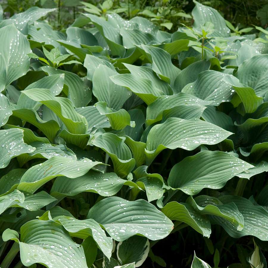 SHADE PLANTS: This Devon Green hosta has dark green, glossy leaves that are heart shaped. The thick foliage have a lot of texture to them, making this a beautiful addition to your garden this season.