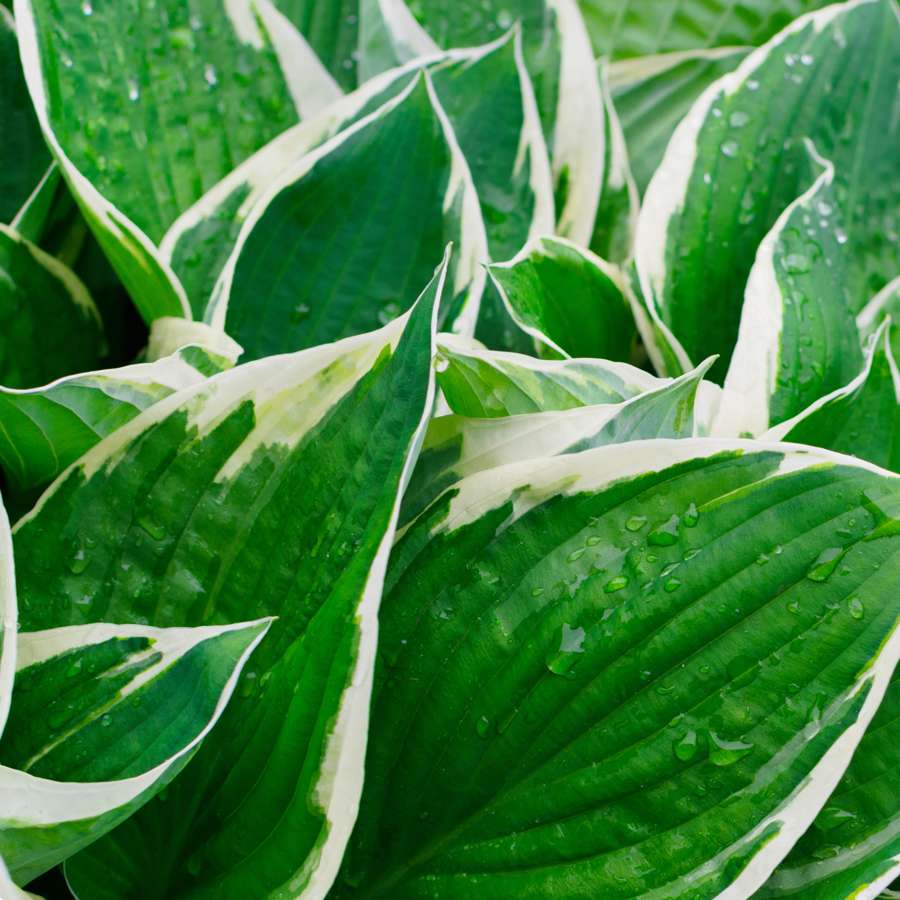 SHADE PLANTS: This Patriot hosta has ovate leaves that have dark green centers and outstanding, crisp white, streaked margins. The margins are creamy-yellow in Spring.