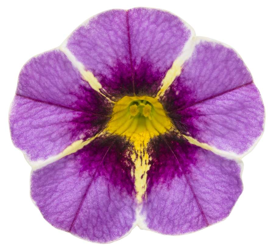 SPRING FLOWER: This beautiful Superbells Evening Star calibrachoa is a beautiful shade of purple with bright yellow lining in the center making a star shape. They thrive in containers or raised beds!