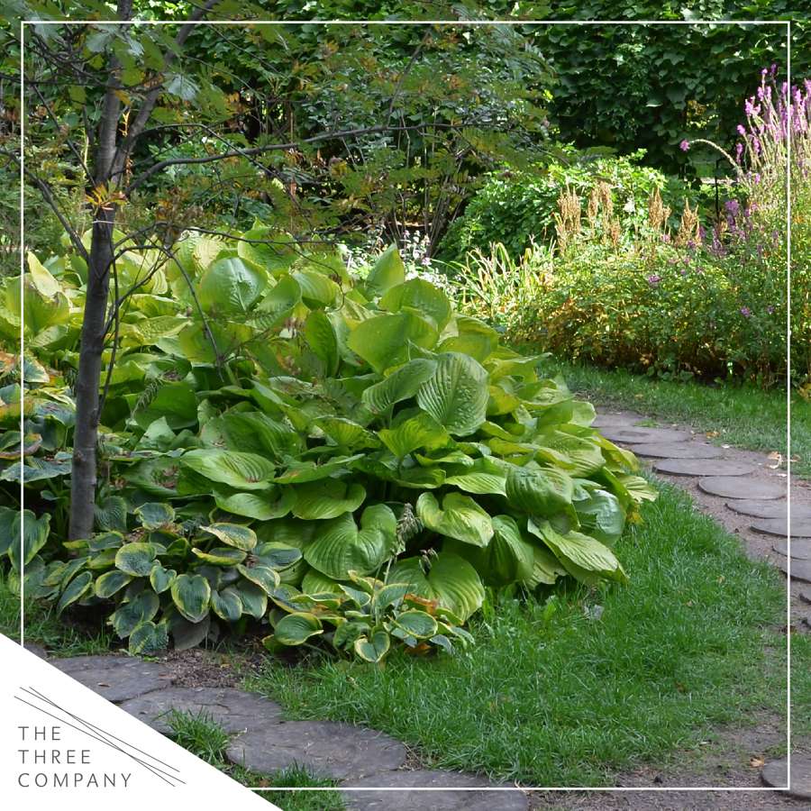 Hostas are a beautiful perennial plant with large, thick leaves that will add dimension to your space. They look great lining a pathway or in a garden bed.