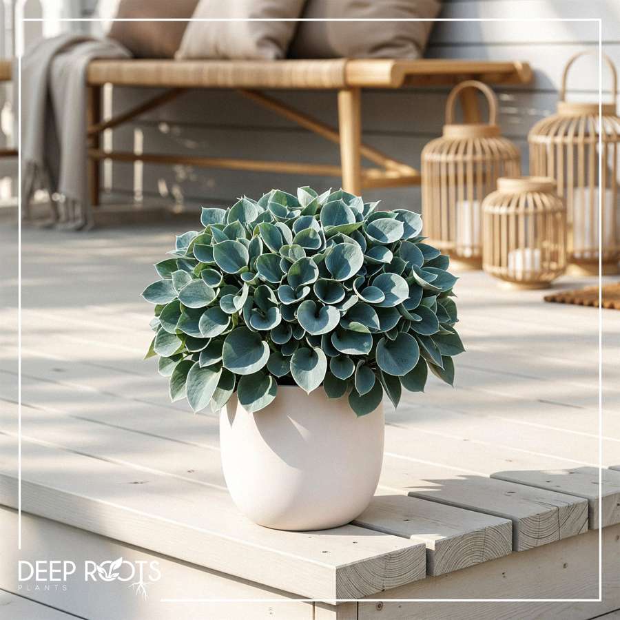 SHADE PLANTS: "Blue Mouse Ears" hosta is a miniature hosta known for its small, rounded, blue-green leaves that resemble mouse ears. It forms a dense, low-growing mound and produces lavender flowers in mid-summer.