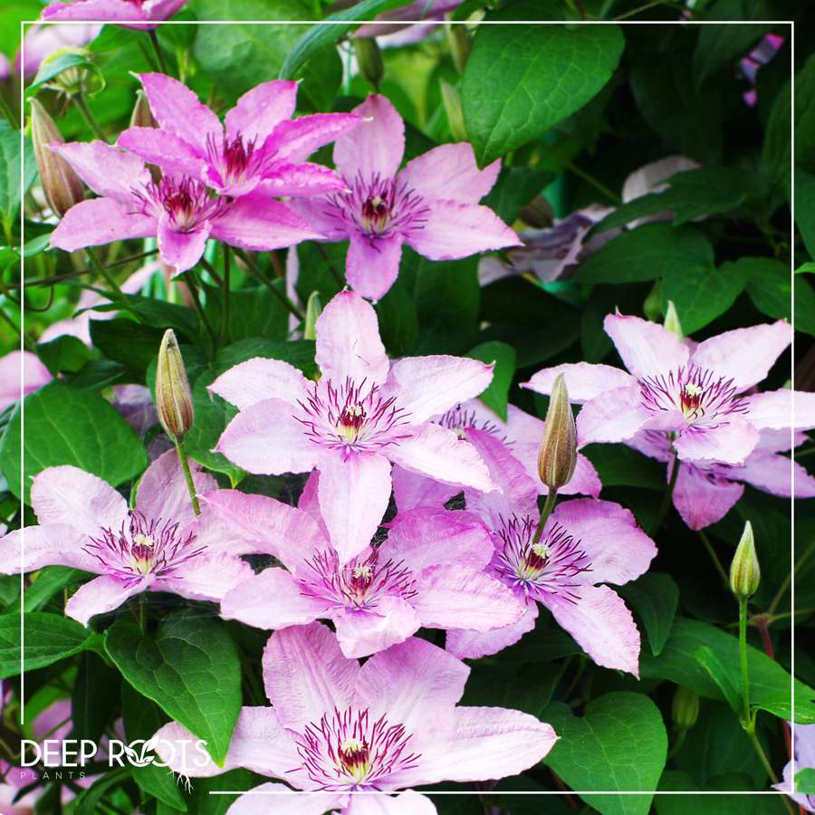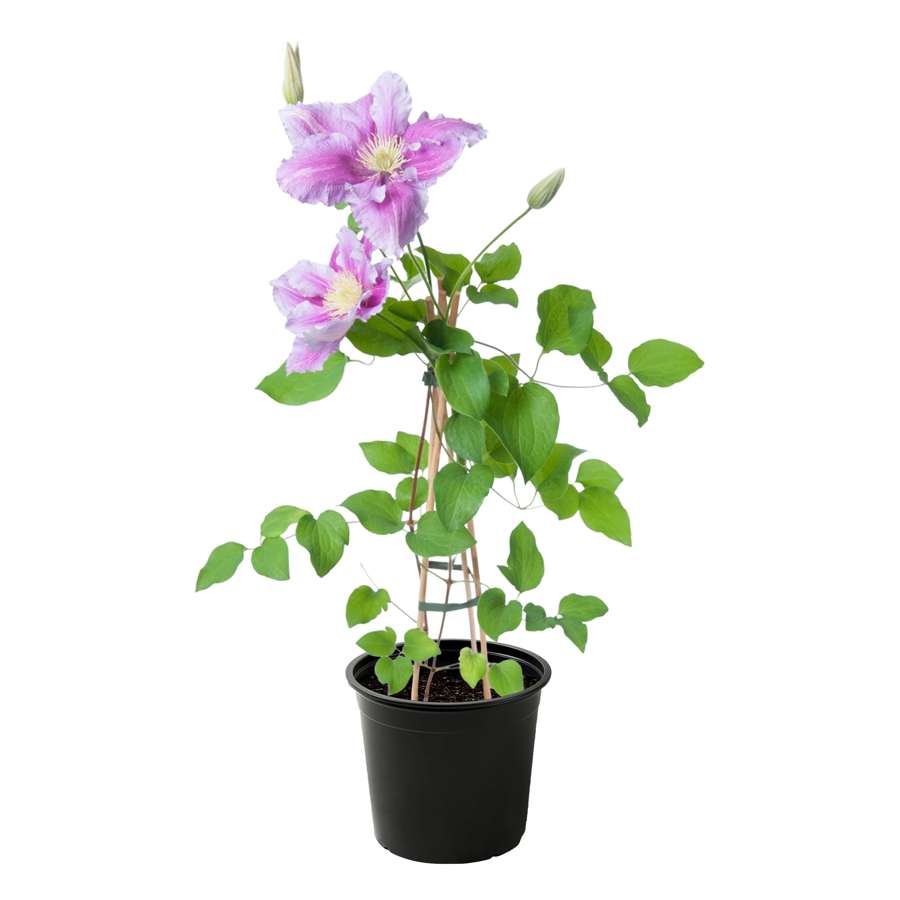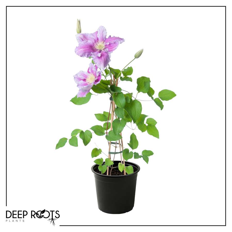 This vibrant clematis will be beautiful in your outdoor space this season. Its trailing nature will add texture and height to your Spring garden as it climbs its surroundings. It looks beautiful on a trellis or fence. Plant gently and enjoy year after year!