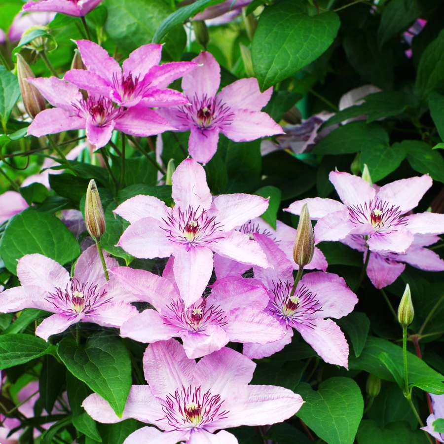 CARE: Plant clematis in a location with full sun but be sure to keep the roots cool and shaded. This can be done by adding mulch or a ground cover around the planting area. Water weekly and be sure to plant in well-draining soil and fertilize regularly.