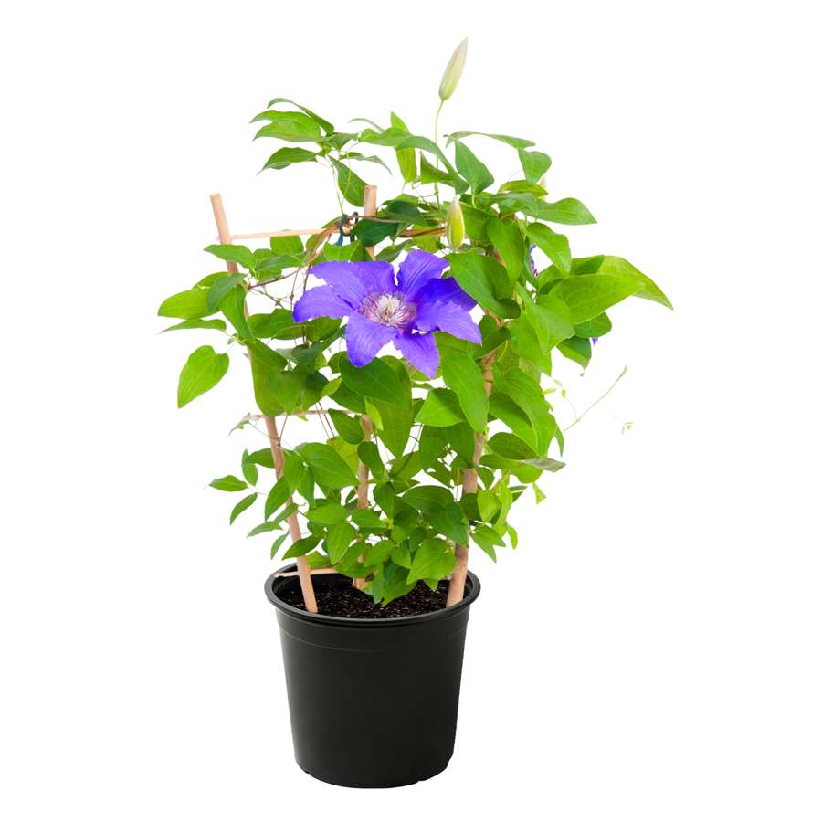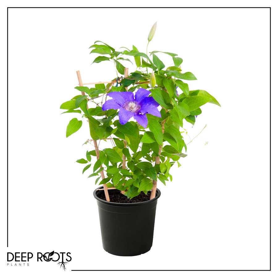This vibrant clematis will be beautiful in your outdoor space this season. Its trailing nature will add texture and height to your Spring garden as it climbs its surroundings. It looks beautiful on a trellis or fence. Plant gently and enjoy year after year!