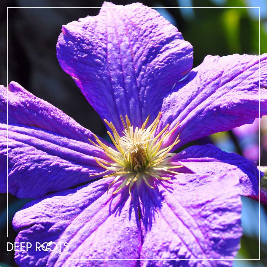 CARE: Plant clematis in a location with full sun but be sure to keep the roots cool and shaded. This can be done by adding mulch or a ground cover around the planting area. Water weekly and be sure to plant in well-draining soil and fertilize regularly.