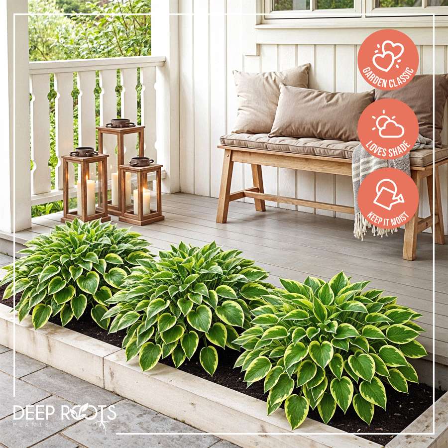 Hostas are a beautiful perennial plant with large, thick leaves that will add dimension to your space. They look great lining a pathway or in a garden bed.