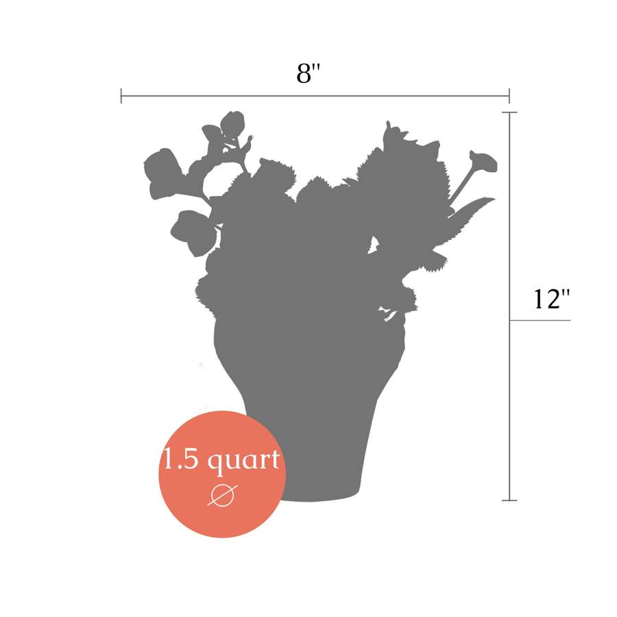 Ships 12" Tall by 8" Wide and will grow to be about 18 inches tall.
