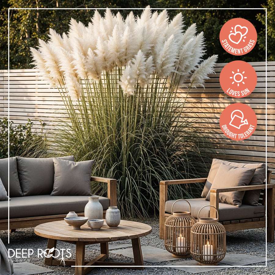 ORNAMENTAL: Famous for its unmistakable feathery white plumes, pampas grass adds beautiful texture to outdoor spaces.