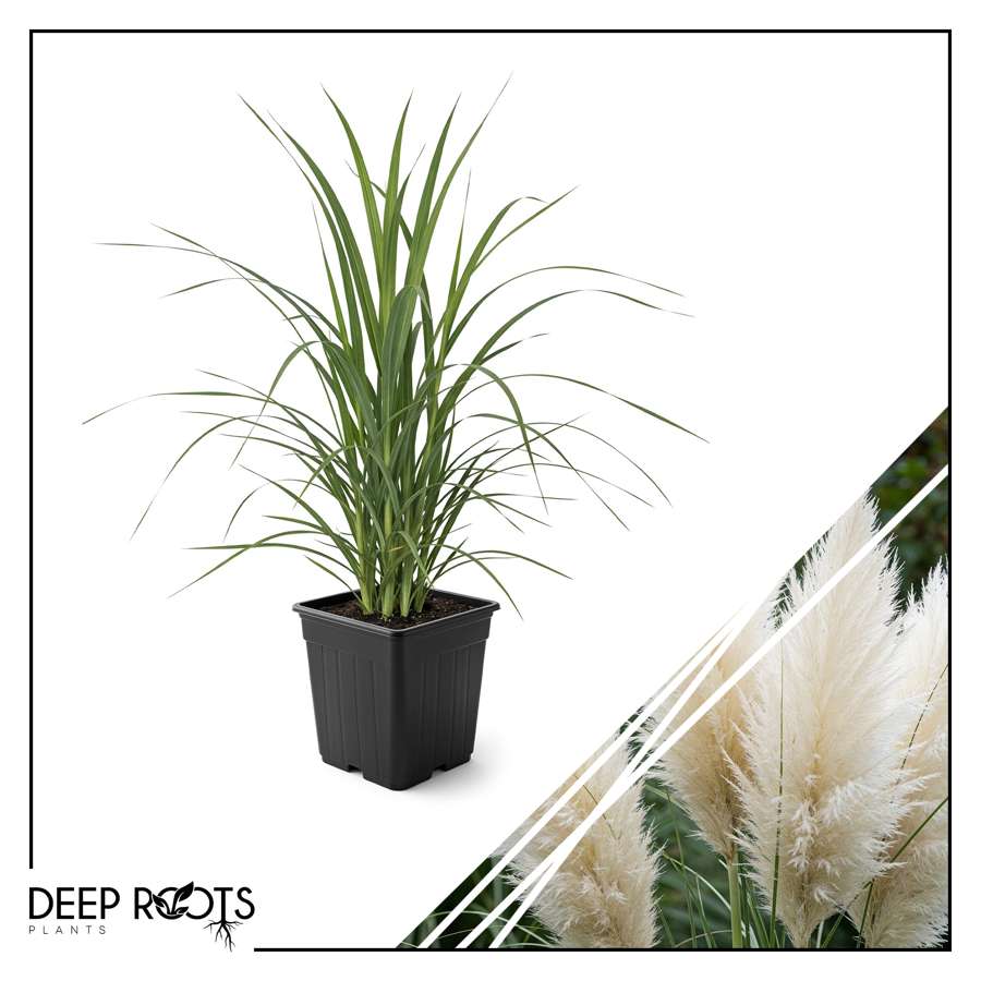 These beautiful white pampas grasses are sure to wow you and your guests for years to come! Their beautiful showy white plumes and tall flowy grass grow to a perfect size to add texture to your garden or even some privacy! Add these to your landscape today!