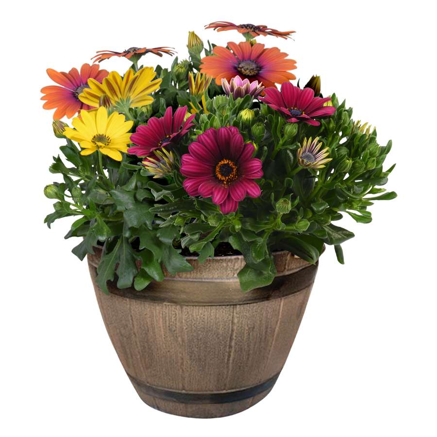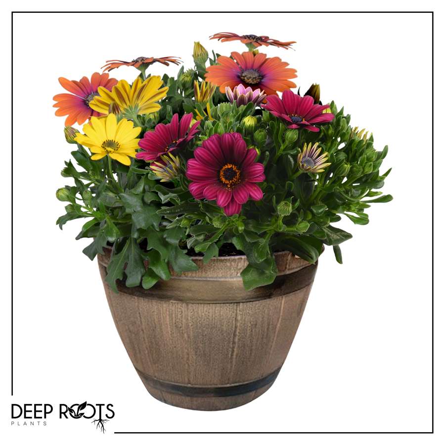 These beautiful osteospermum in a gorgeous whiskey barrel will make a great addition to your Spring garden! Their beautiful, bright colors are sure to add a pop of fun to your space.