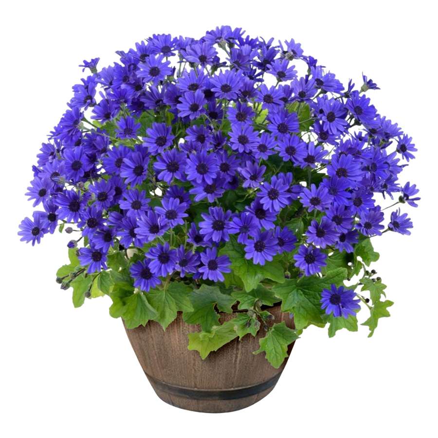 Pericallis' bright blooms and gorgeous petals will add a nice touch to your space this Spring. Set this ready-to-go whiskey barrel full of pericallis on your front porch to be admired!