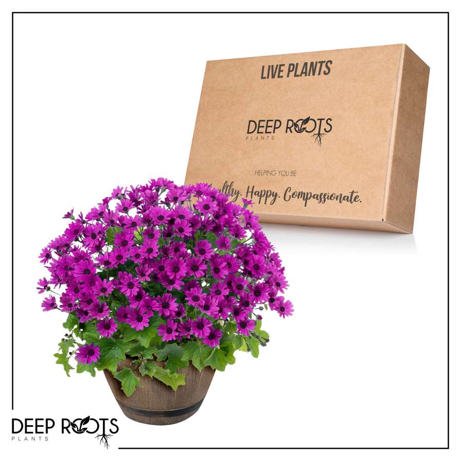 Pericallis' bright blooms and gorgeous petals will add a nice touch to your space this Spring. Set this ready-to-go whiskey barrel full of pericallis on your front porch to be admired!