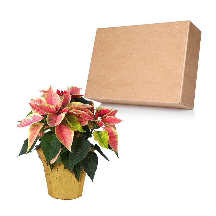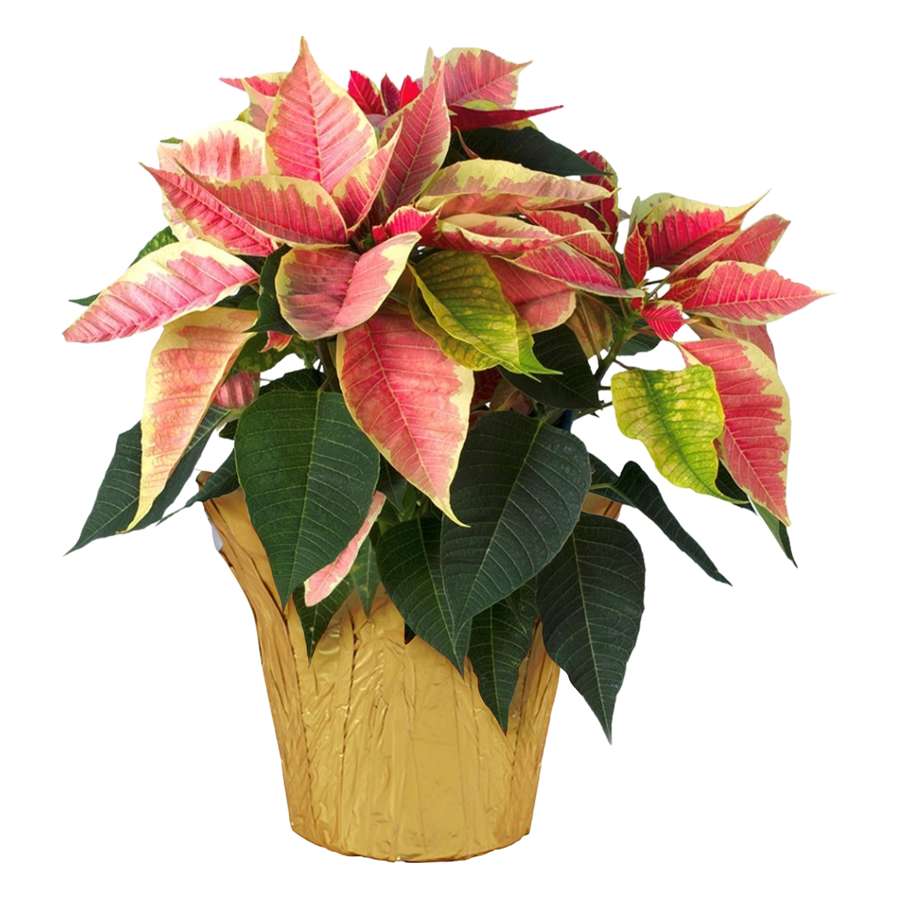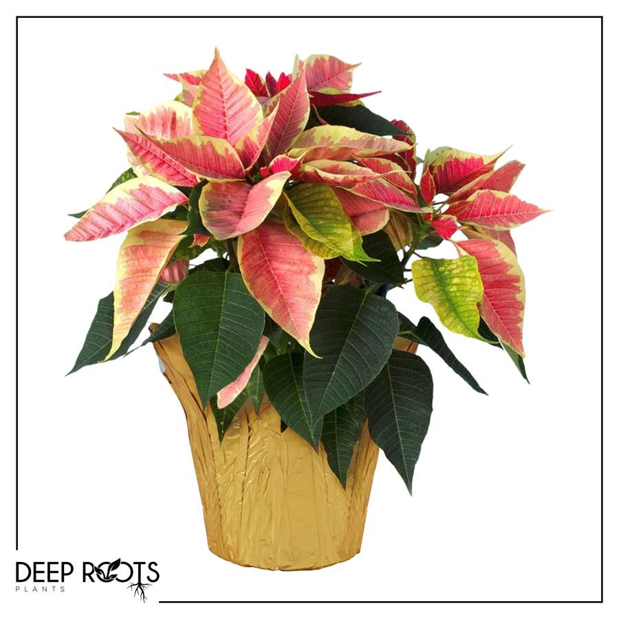 Beautiful poinsettias in a decorative gold cover are the perfect festive decor for your space that are sure to bring you joy! Place them near a window and enjoy their bright and bold color during the holiday season.