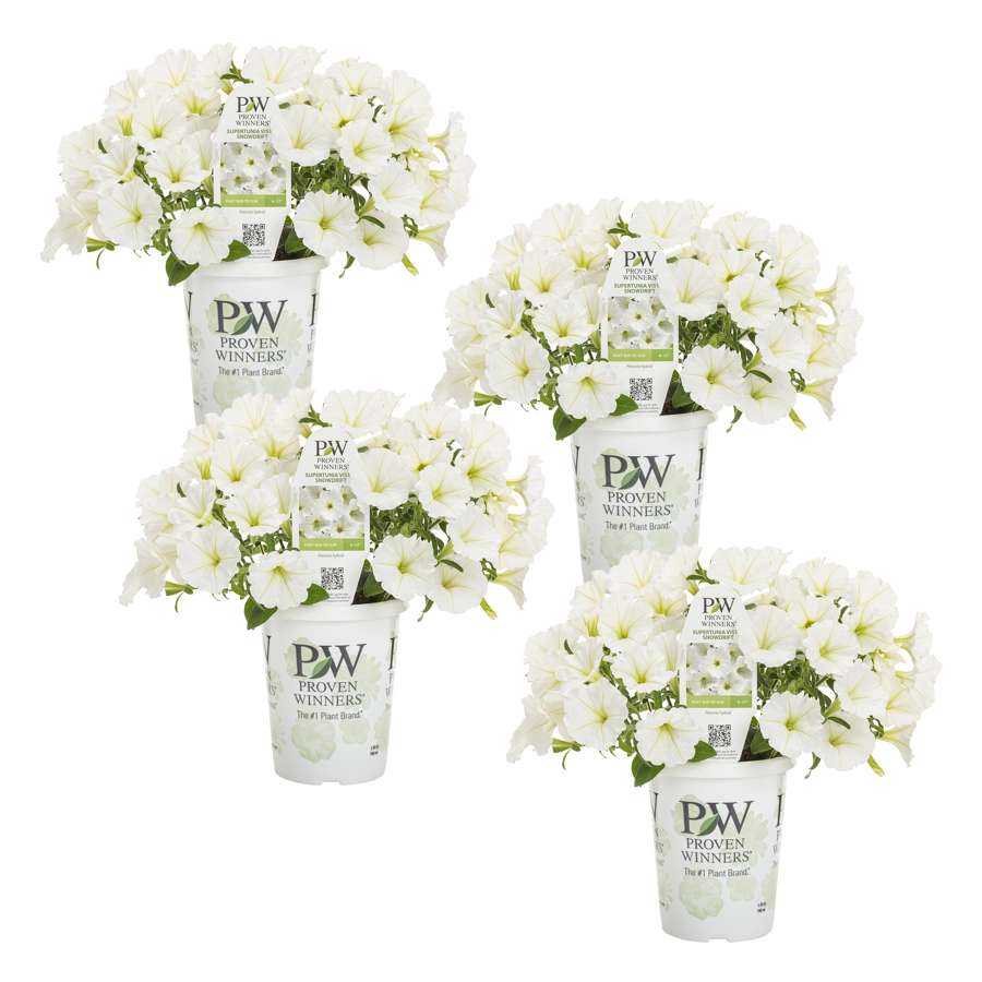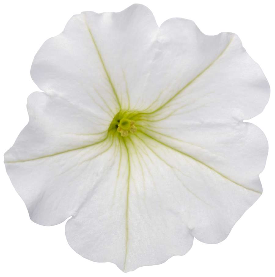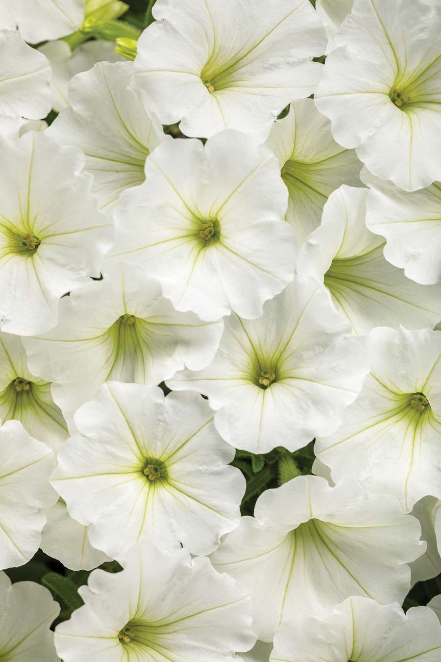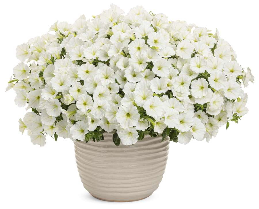 SPRING FLOWER: Supertunia Vista Snowdrift petunias are a beautifully creamy shade of white with a lime green center. They look great in a flower bed, pot or hanging planter!