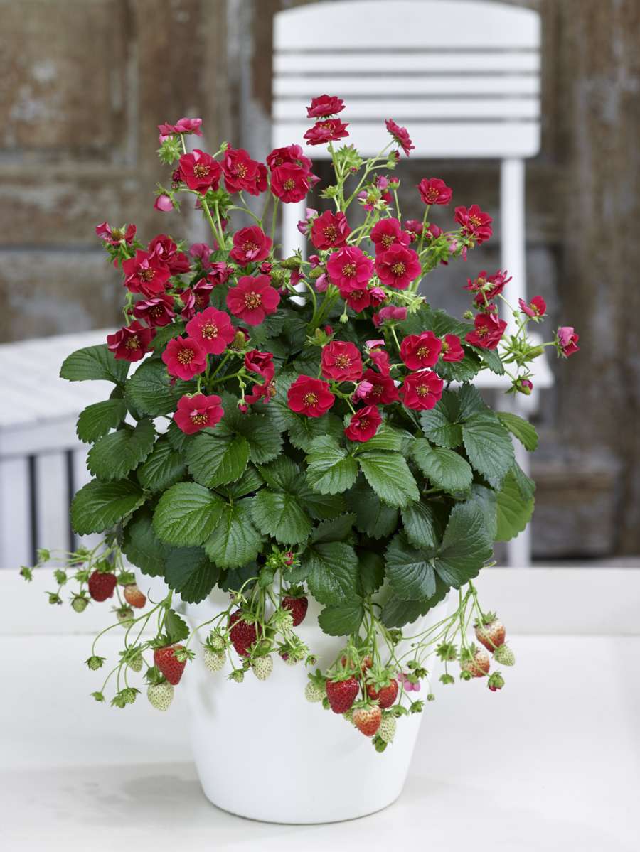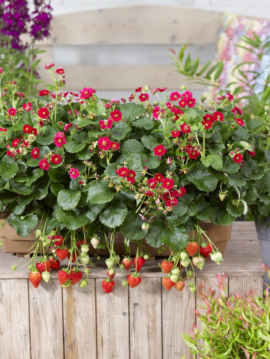 CARE: This plant does best in a location with full sun, fertile soil and moderate watering. It can be planted in your garden or hung in a basket or a container to admire the growth and easily access the strawberries.