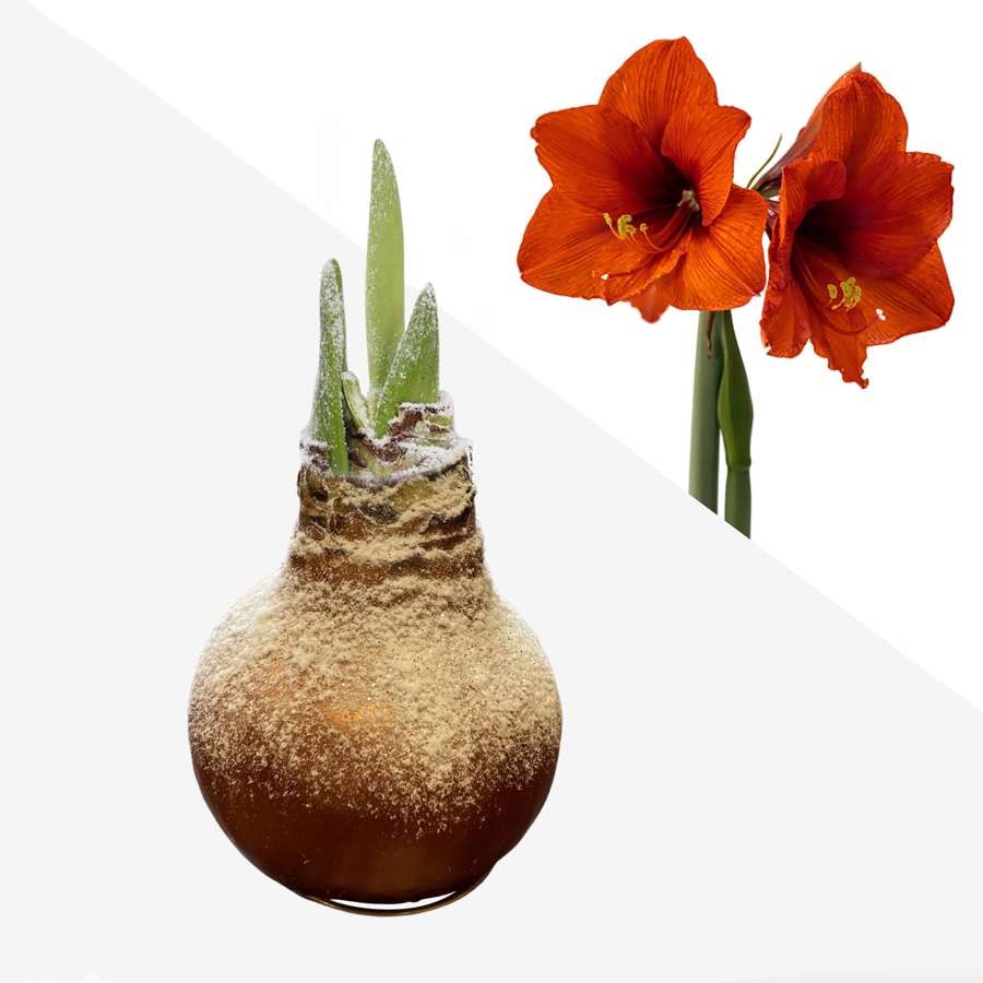 Nothing wows quite like a bronze, snow flecked waxed amaryllis bulb. Place it on a flat surface and watch it bloom, adding the perfect touch to your space for the holiday season!