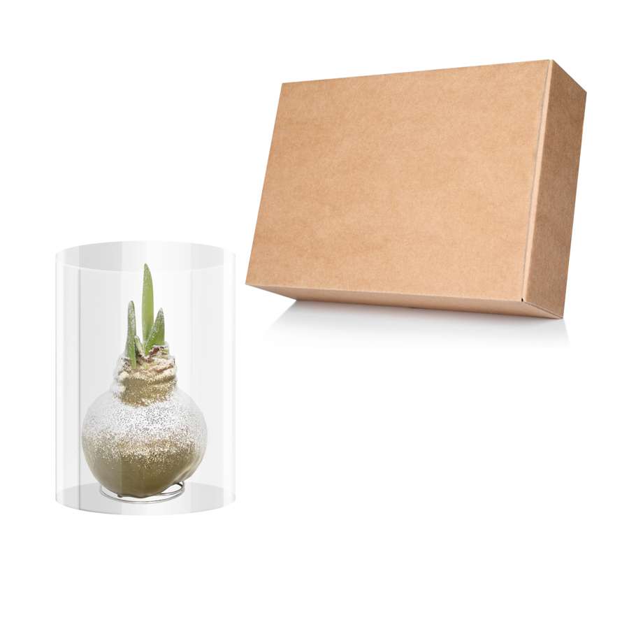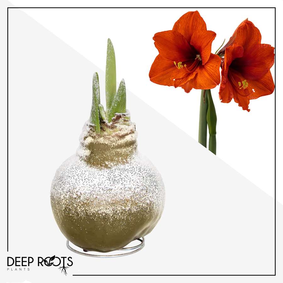 Nothing wows quite like a gold, snow flecked waxed amaryllis bulb. Place it on a flat surface and watch it bloom, adding the perfect touch to your space for the holiday season!