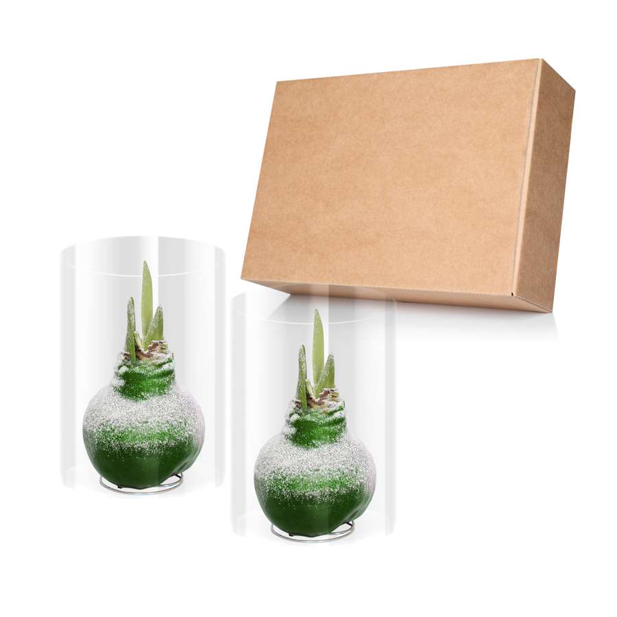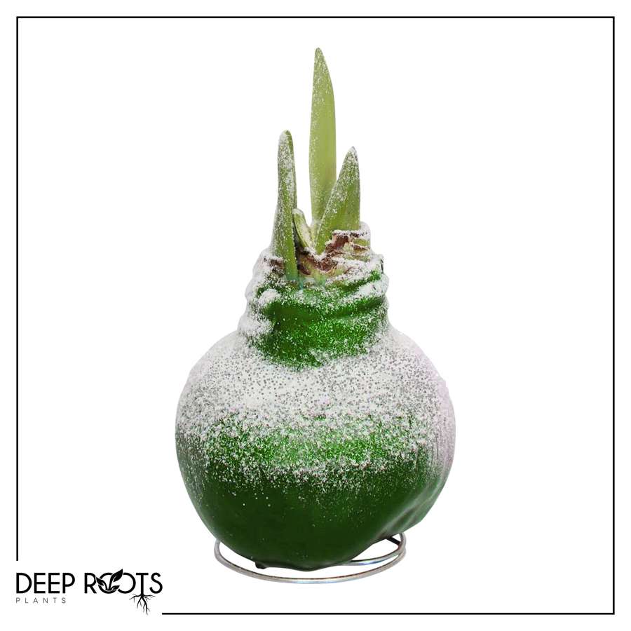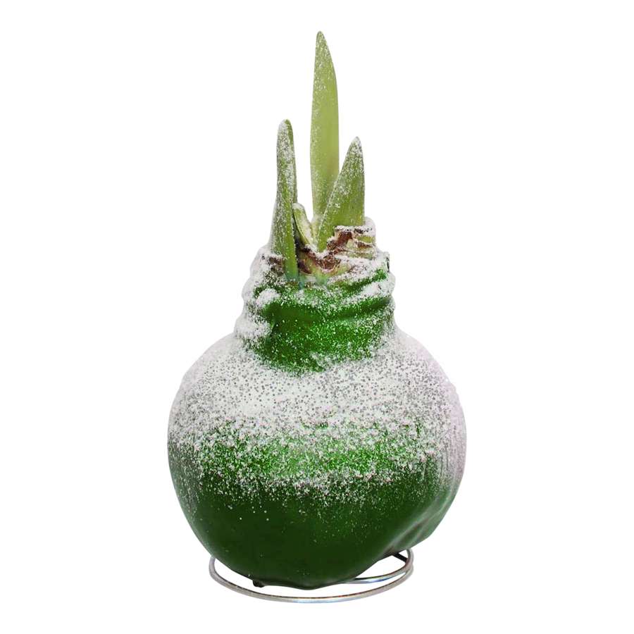 Nothing wows quite like a green, snow flecked waxed amaryllis bulb. Place it on a flat surface and watch it bloom, adding the perfect touch to your space for the holiday season!