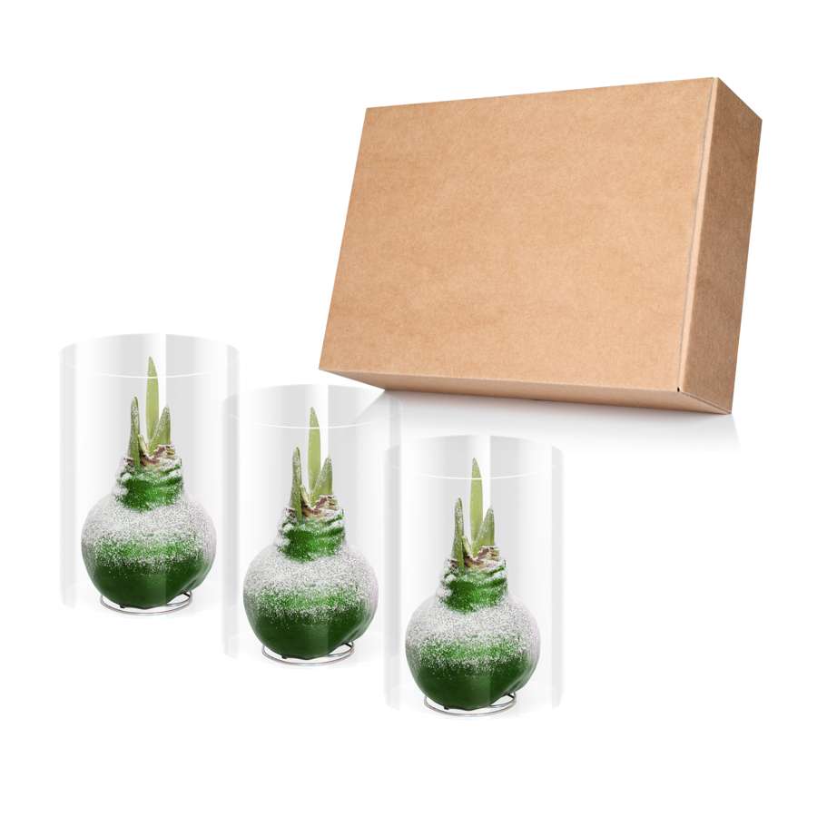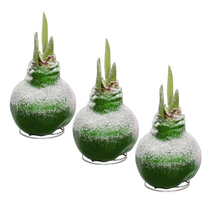 Nothing wows quite like a green, snow flecked waxed amaryllis bulb. Place it on a flat surface and watch it bloom, adding the perfect touch to your space for the holiday season!