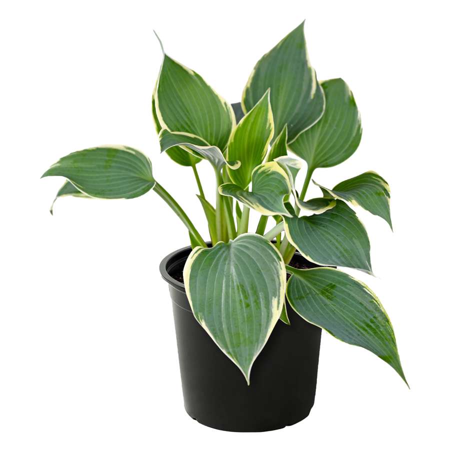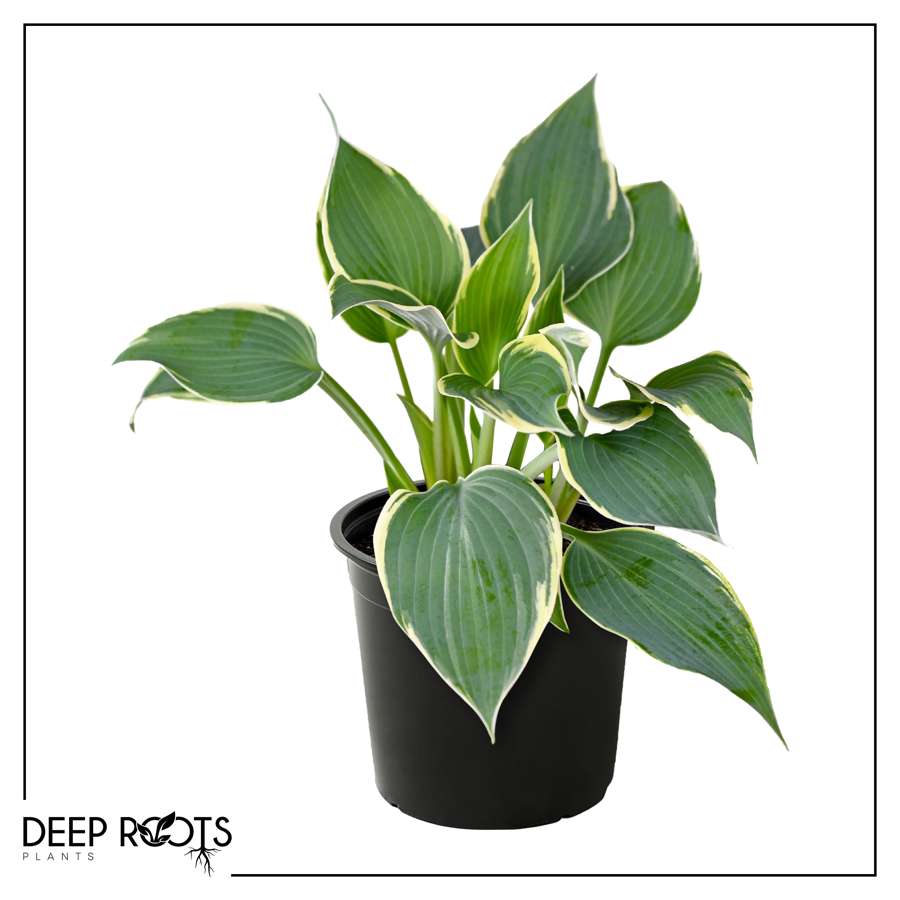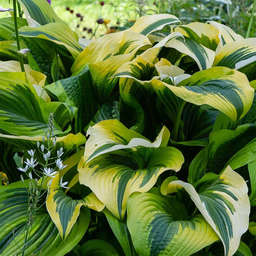 SHADE PLANTS: Tootie Mae hostas have dark blue-green leaves with bright yellow and gold margins. Their thick leaves and attractive design make them a great addition for your space.