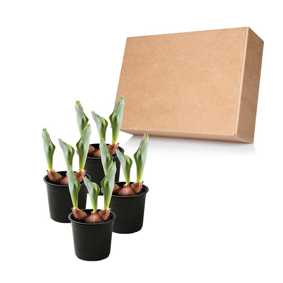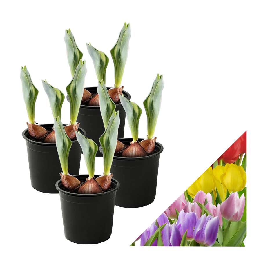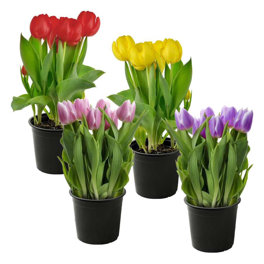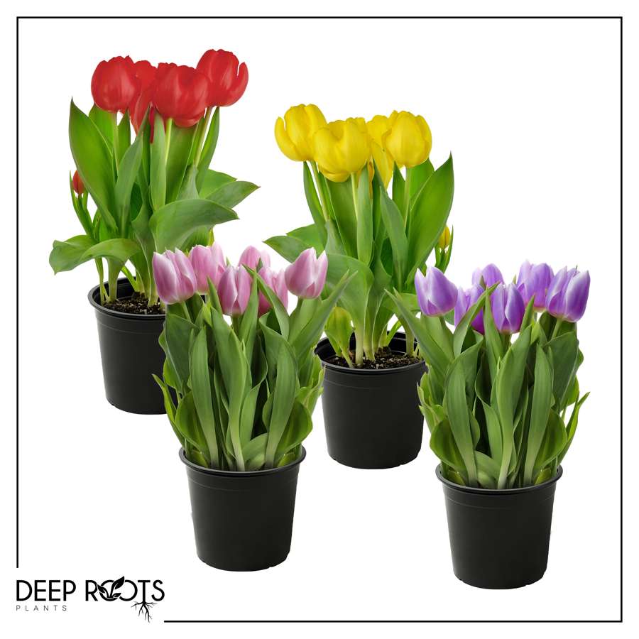 CARE: Tulips prefer a sunny location with well-draining, neutral to slightly acidic soil. Plant your bulbs 4-8 inches below the surface and 2-5 inches apart, with the pointy end facing up. Fertilize with compost or granular fertilizer, and water immediately after planting. After planting, only water when it's dry or hasn't rained in over two weeks.