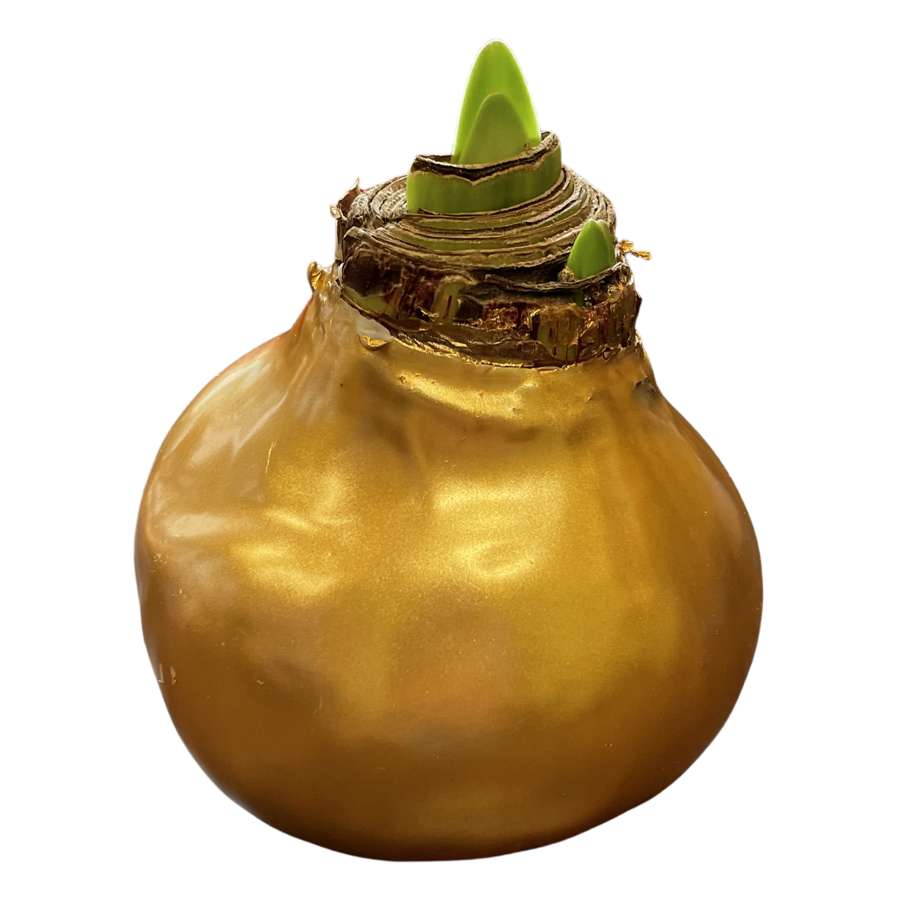 Nothing wows quite like a gold waxed amaryllis bulb. Place it on a flat surface and watch it bloom, adding the perfect touch to your space for the holiday season!