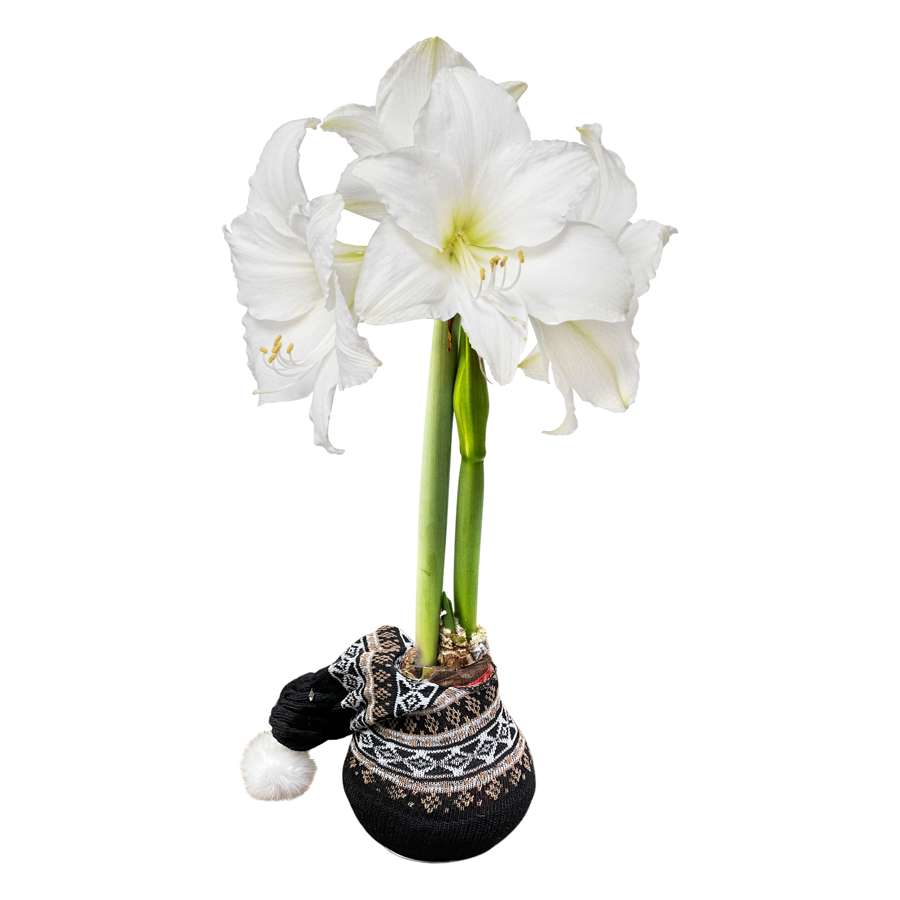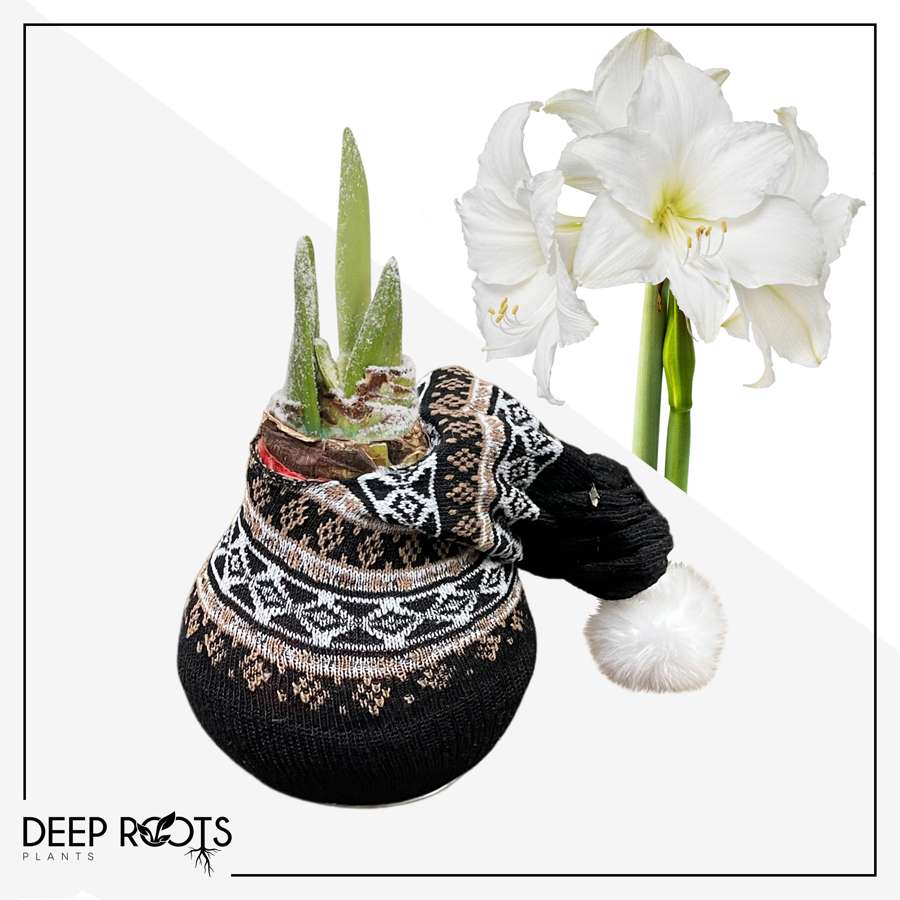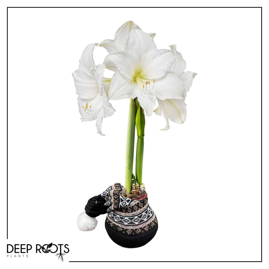 BLOOM COLOR: Beautiful white flowering amaryllis bulb in a cozy holiday sock that will give your home the perfect touch for the holiday season!
